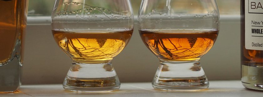 The subject of the review, while still available here in Oregon and online, has been discontinued. There is no info on the Baby at the Tuthilltown site but the Baby Bourbon’s back label explains it all: it uses 100% New York-grown corn, is aged in charred new American oak for less two to four years. Some of the casks are small, 15 and 25 gallons, and are blended with spirit from the normal 53-gallon Bourbon casks. In the smaller casks, there is more wood-to-spirit contact per gallon, so the magic of aging should be faster in them. On the aging side, the Baby has an edge on the Rogue, though it’s aged far less than Knob Creek’s 9 years. Like Rogue, Tuthilltown promotes locally-sourced ingredients and produces with a pot still, not a continuous Coffey still like Knob Creek.