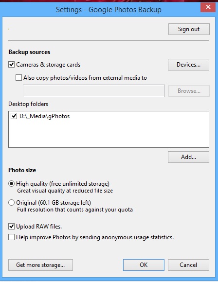 - The Google Photos app only recognizes photos if you upload to the Google web site using their Photos interface (the ‘upload’ link on the Google Photos web site or desktop uploader). If you have a lot of photos on your PC, the Desktop Uploader is the way to go. You can add any target directory to suck photos up from (use the ‘add’ button in the uploader Directories screen – see illustration), and also grab them from camera SD cards. Note: Uploader did not recognize SD cards plugged into adapters on my USB hub as ‘devices,’ only the SD card slots native to my system.