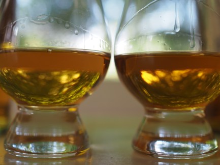 I’m relieved to see they bottle the Storm at the traditional (and offbeat) Talisker ABV percentage, 45.8. Must be an inside joke on Skye. Side-by-side with the 10-year-old (oh dear, sibling rivalry) I see right off the color is comparable, but the Storm is a shade more straw to the 10-year’s gold. That’s to be expected, in the absence of coloring (but Diageo isn’t telling one way or the other), if we assume younger malts in the Storm’s marry.* Less time in cask == less color.