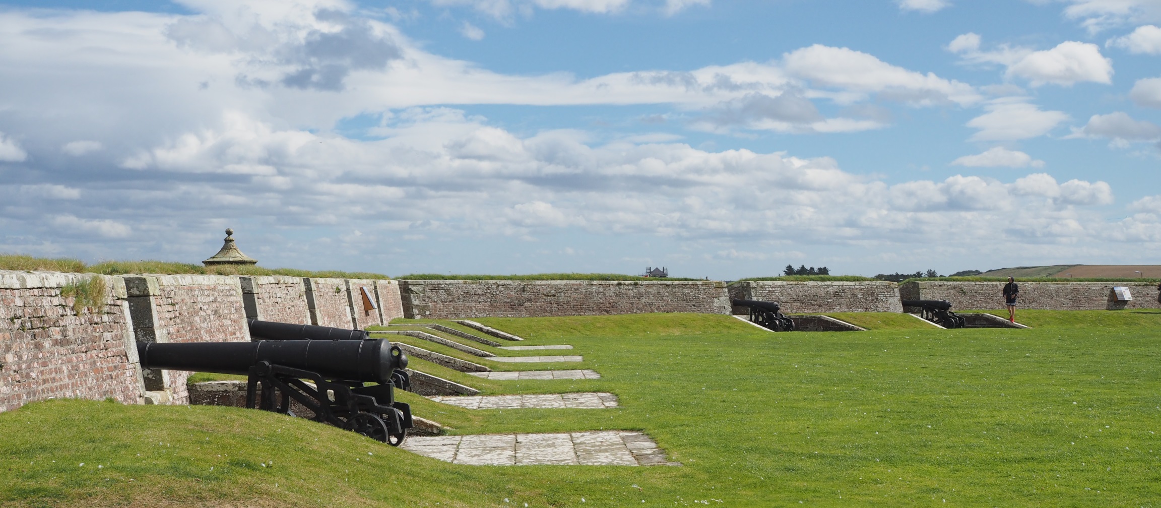 Heading West from Brodie we took country lanes past an Army base (with ‘live fire’ flags fluttering at the ranges) and into Fort George. This is an active Army barracks and thus very well-preserved. The ramparts are quite an impressive–complete with huge ditch and drawbridge–and present an intricate example of 18th century fortress science. The public is welcomed (after a cursory safety inspection) to wander all over the grounds, and as you can see from the photo below, it’s picture-perfect for a picnic. We did not have a lunch packed so ate at the cafe, sitting outside on rough tables as various officer’s of the Black Watch sauntered by. The sandwiches were excellent, made with artisan breads and freshly constructed. Much better fare than when I was in the Army!