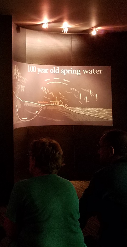 It was with some disappointment then that we encountered our first truly industrial-scale distillery tour at Glenmorangie. The tour buses in the vast parking lot should have tipped us off.Β The Glenmorangie distillery produces 6 million liters per year, a bit more than the Balvenie. Their tour trade, however, must be many times that of the Balvenie or Glenfarclas. On the plus side, the tour is inexpensive: Β£7, and that includes a taste at the end. Also, they have a big, modern, well-stocked shop with a lot of special bottlings available. On the down side, the tour is short, with few photo ops, and starts with a healthy dose of marketing.