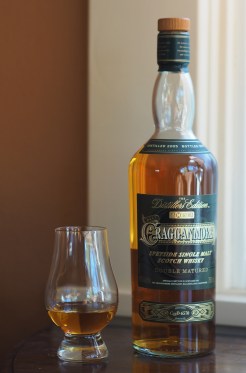 In the Quinta Ruban review, I used this Cragganmore as a foil for reviewing the Glenmorangie. I noted “the Cragganmore is flatter, delivering more malt and less toffee-and plum-than the Q.R. Indeed, the Distiller’s Edition’s nose sits between that of the Glen 10 and the Quinta Ruban. It is more refined than the Glen 10…no graininess, no sting, with subtle hints of oak, red apple and mineral peat. But it is not as robust as the Quinta Ruban.”