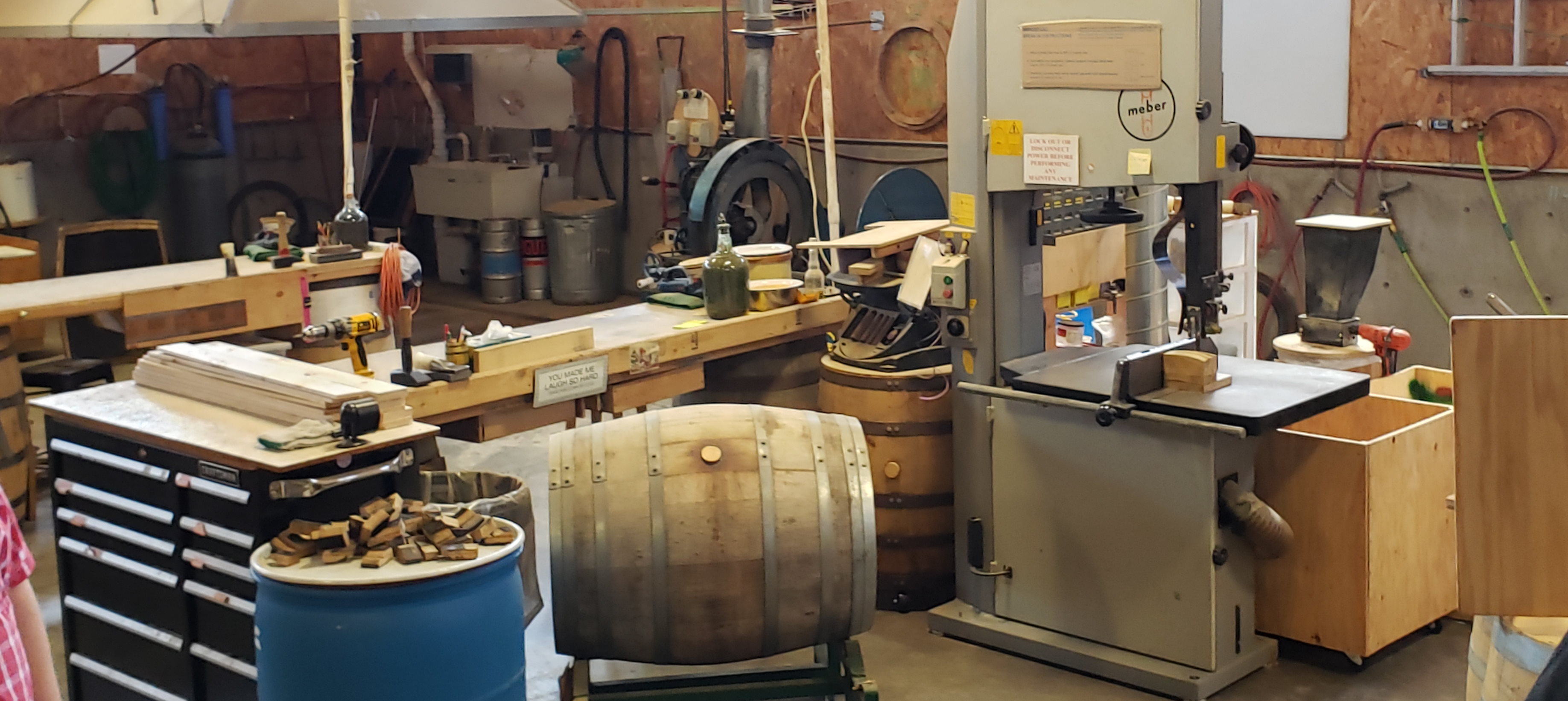 My wife and I toured their brewery a long while back and returned in 2019 to visit the distillery as well. Of the latter, we were able to see only their cooperage, as the still room was closed for maintenance. It’s a nice tour, though short–it’s a small operation–but they let you in the guts of the place right in the front door. You literally walk through the brewery to get to the gift shop and cafe. After some tastes of their brews, you see the rest of the brewery and following a walk across the parking lot to their distillery and cooperage, the tour concludes in a small bar apart from the brewhouse where they share some tastes in ‘standup’ fashion (from a platter of plastic cups). It’s a far cry from the extensive tours and fancy tasting rooms of the big Scottish producers, but it’s also more intimate–we got to walk around the floor of the cooperage and get an explanation of each step of the barrel-making process. Needless to say, they have intimate control of the quality of their barrels. For some photos of their (small) distillery operation check out their website. You can see part of the cooperage below.