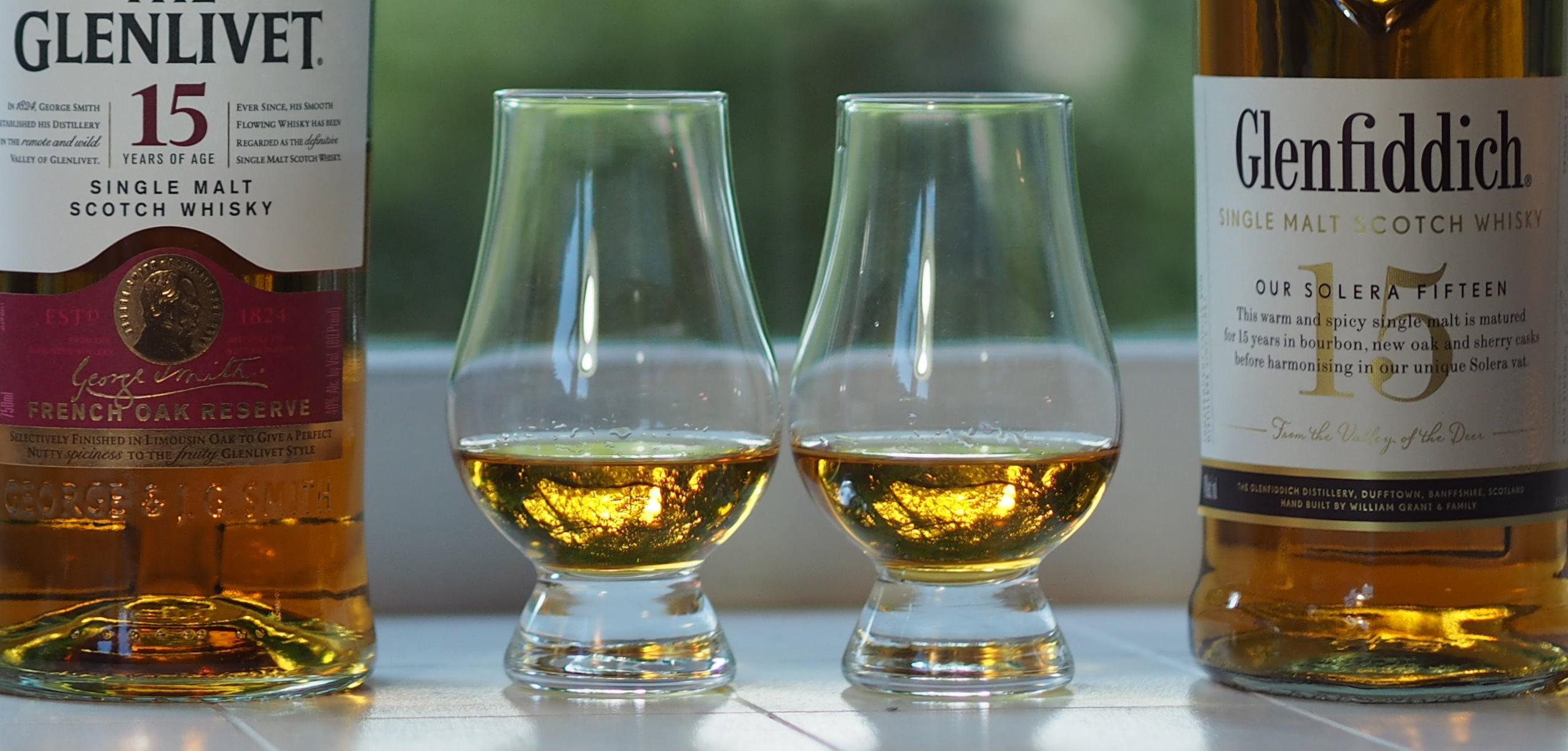 Bottom Line: These are both good whiskies. The Glenlivet is a couple bucks more (currently $78) and I find the Glenfiddich a richer, more rewarding dram, due to the really nice creamy midrange and finer balance, whereas the Glenlivet is a tad livelier, spicier and fruitier. The Glenfiddich, at $73, is a chunk less as well. If like me, you like keeping a sherried whisky or two around for a mellow evening, or to treat a friend who can’t stand the peaty stuff, the Glenfiddich is a good choice. It’s certainly giving the $120 Glenfarclas 17 a run for its money. (Almost, the Glenfarclas has some magic in there.)