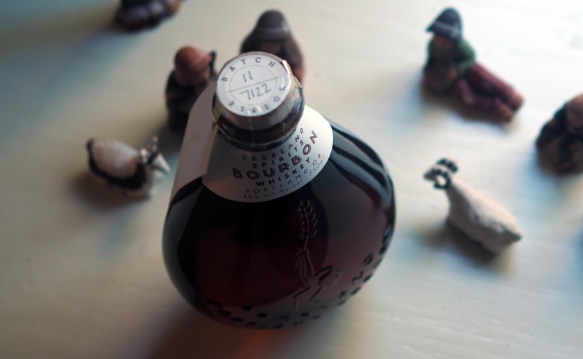 Freeland Spirits is a fairly new distillery in Portland, OR which also produces several varieties of gin (which does not take as much aging). Like my favorite distillery, Talisker, Freeland is run by women. Freeland is also woman-owned, and is named after the tee-totaling ‘Meemaw’ (Grandma) Freeland. Their master distiller, Molly Troupe, has excellent credentials: a Masters Degree in Distillation from Heriot Watt, a major business university in Edinburgh, Scotland. (Odd fact, I have been there and did some work with them long ago.) The Freeland web site explains the bourbon operation only started in 2018, and that their bourbon was produced in partnership with another distiller. Freeland then finished the spirit.