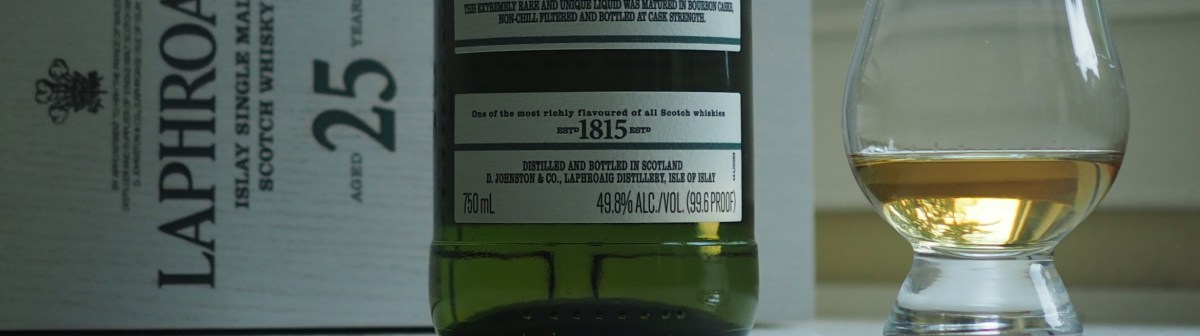 Here it is, Whisky & Words #100. I have saved a good one for this, an old whisky, Laphroaig 25. Age does not improve everything (my joints for example) but it sure does magic to whisky. I have not had a lot of experience with really old whiskies: a Talisker 25 I ordered at a nice restaurant in Manhattan and a 34-year old valinched right from the cask at Balvenie are my benchmarks.