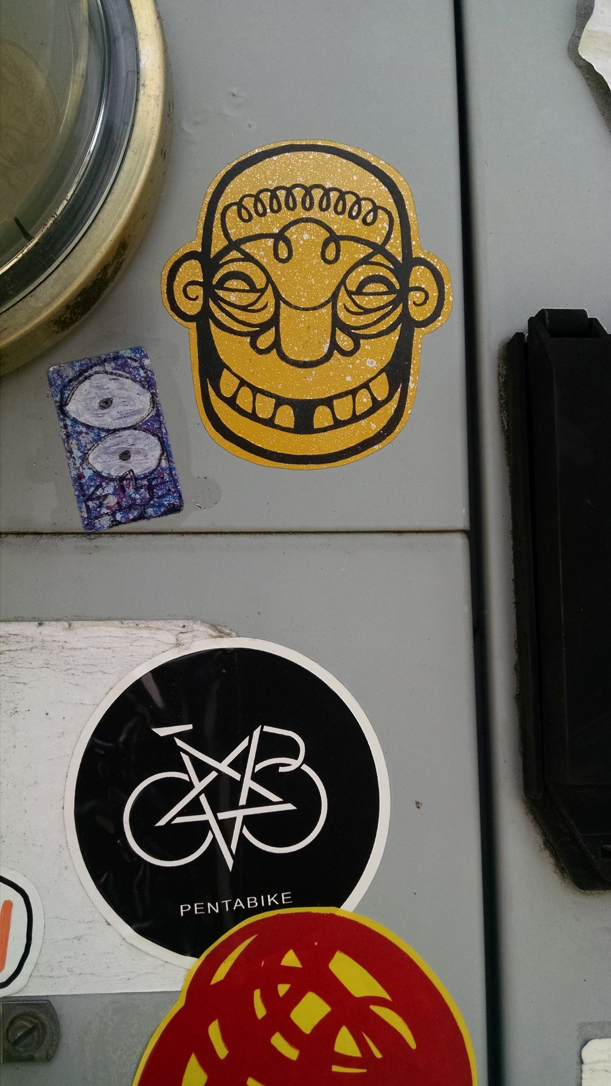 I love the funk that grows into Portland’s cracks like the winter moss — filling the voids with the visual language of a big city. Graffiti and murals get more attention, but the humble sticker gets its due. Slapped onto the back of traffic signs, signposts of any kind, and especially electrical boxes, you’ll find promos for bands, ads for thrift shops, and unfathomable expressions of outrage and angst. These are samples from Northeast – around Kerns, Laurelhurst, the Hollywood.